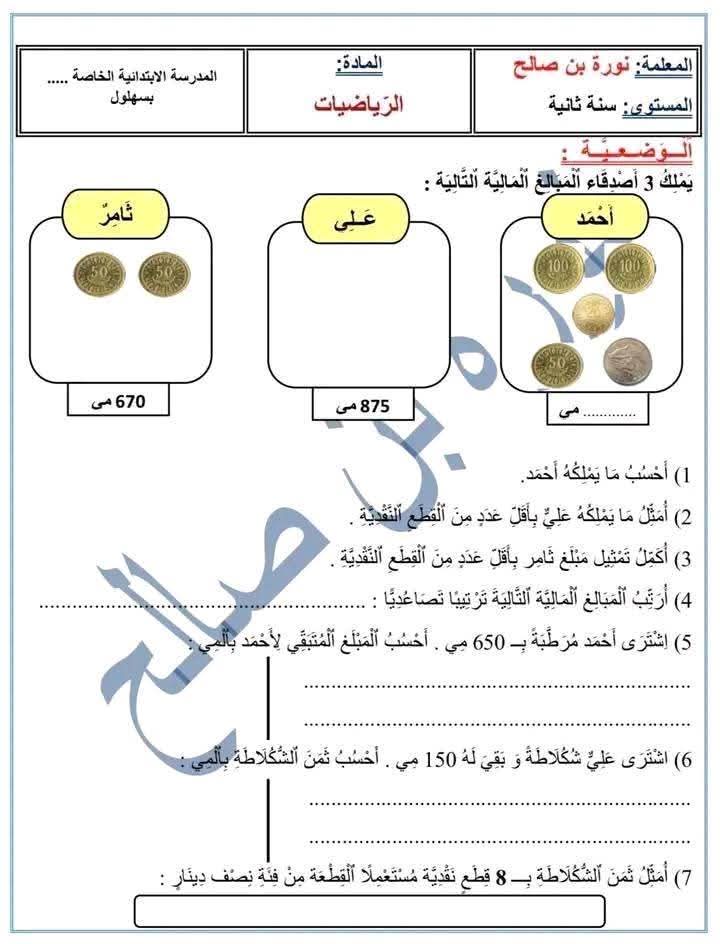 رياضيات السنة الثانية2️⃣ وضعيات ممتازة