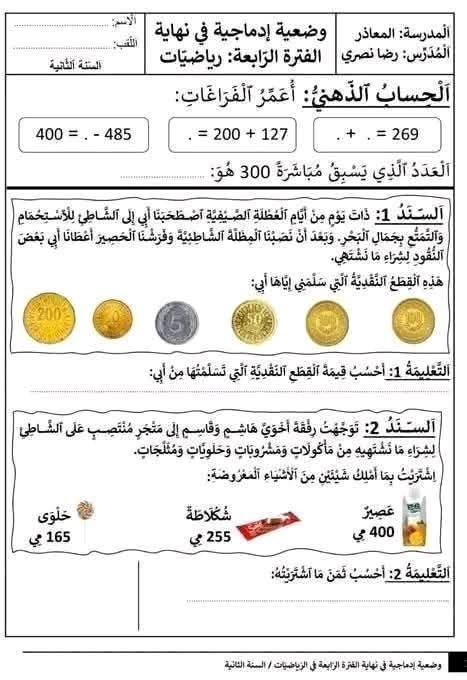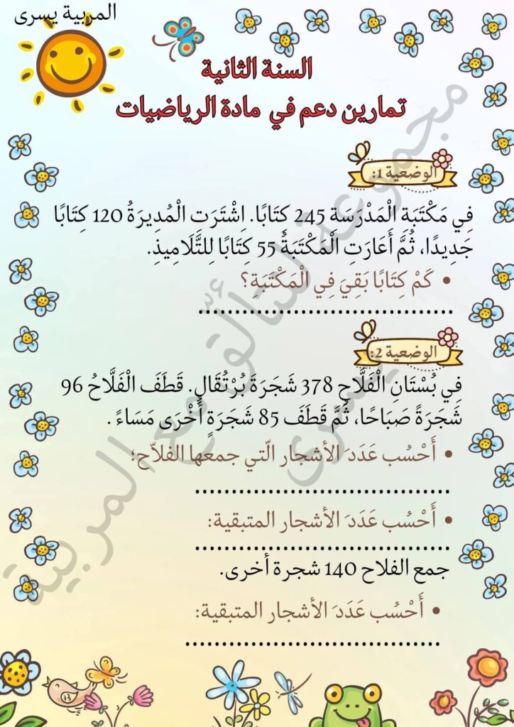 وضعيات ممتازة خاصة بتلاميذ السنة الثانية 2️⃣ الثلاثي الثالث
