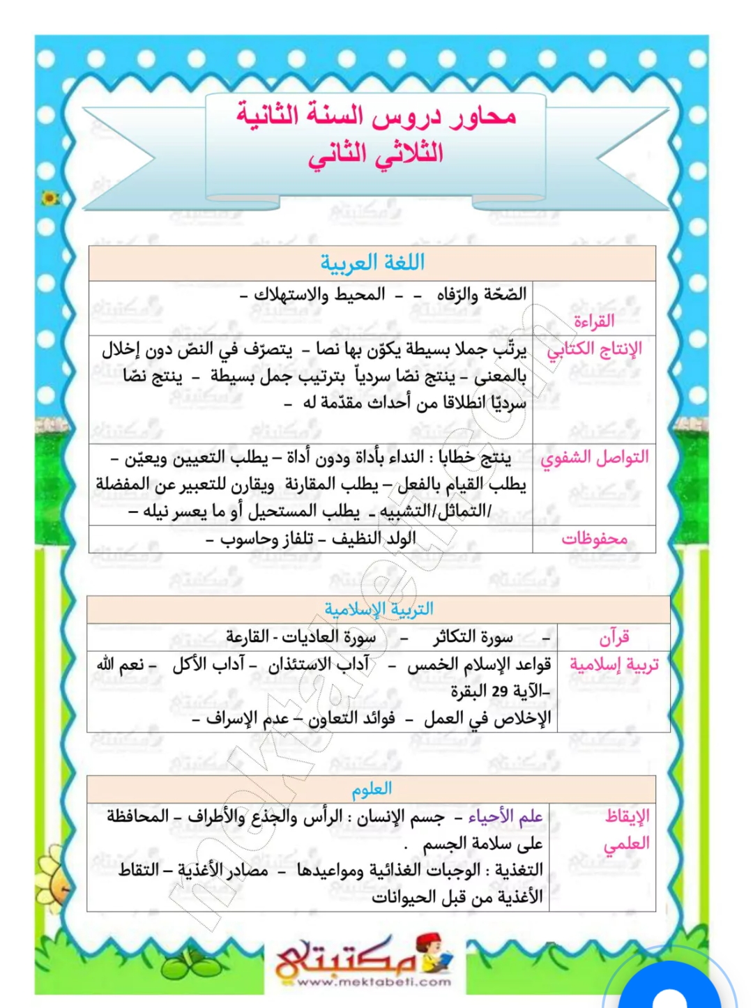 محاور الثلاثي الثاني السنة الثانية 2️⃣