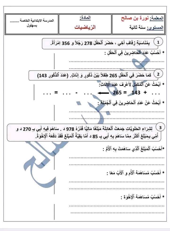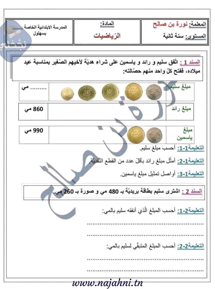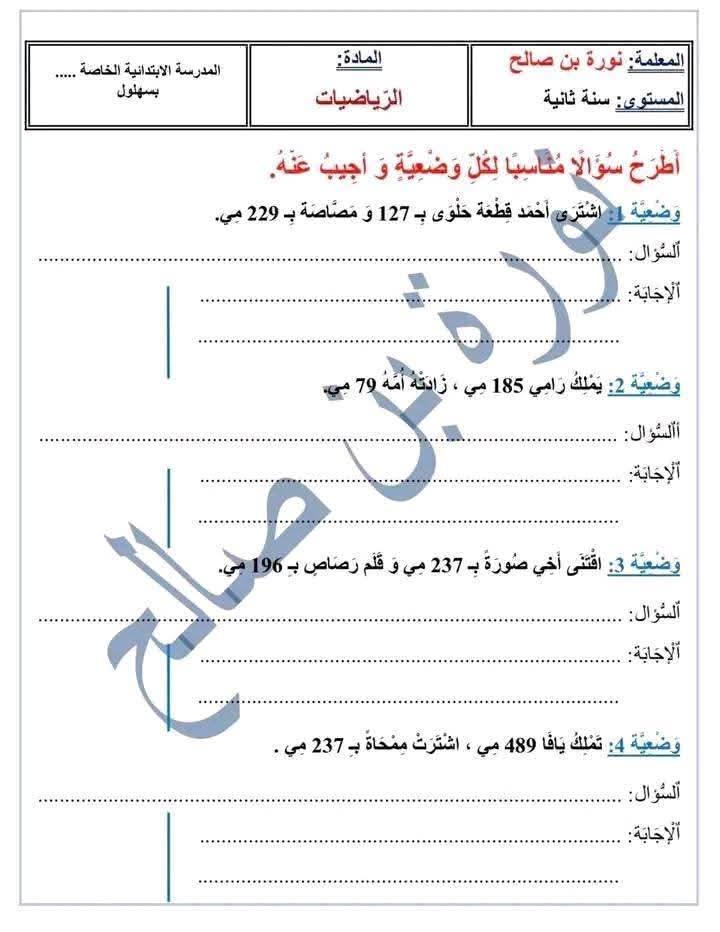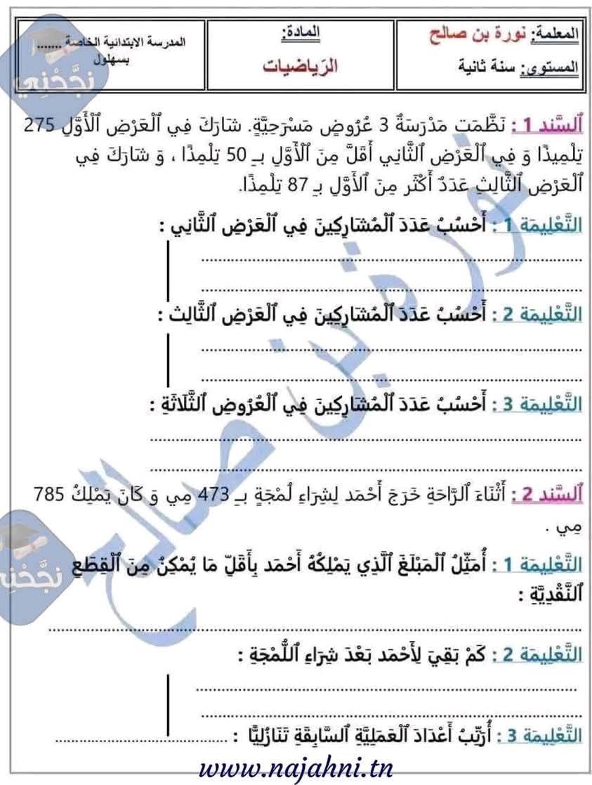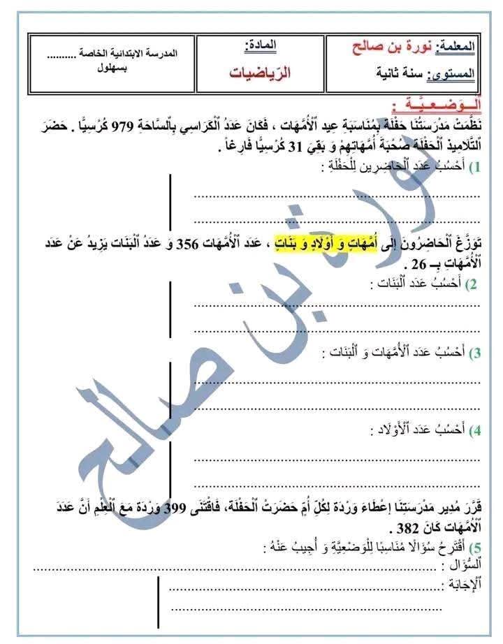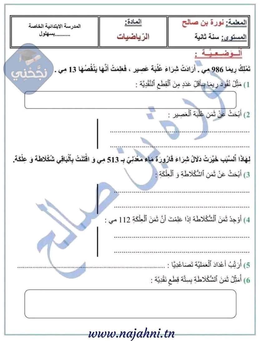 وضعيات ممتازة خاصة بتلاميذ السنة الثانية 2️⃣ الثلاثي الثالث